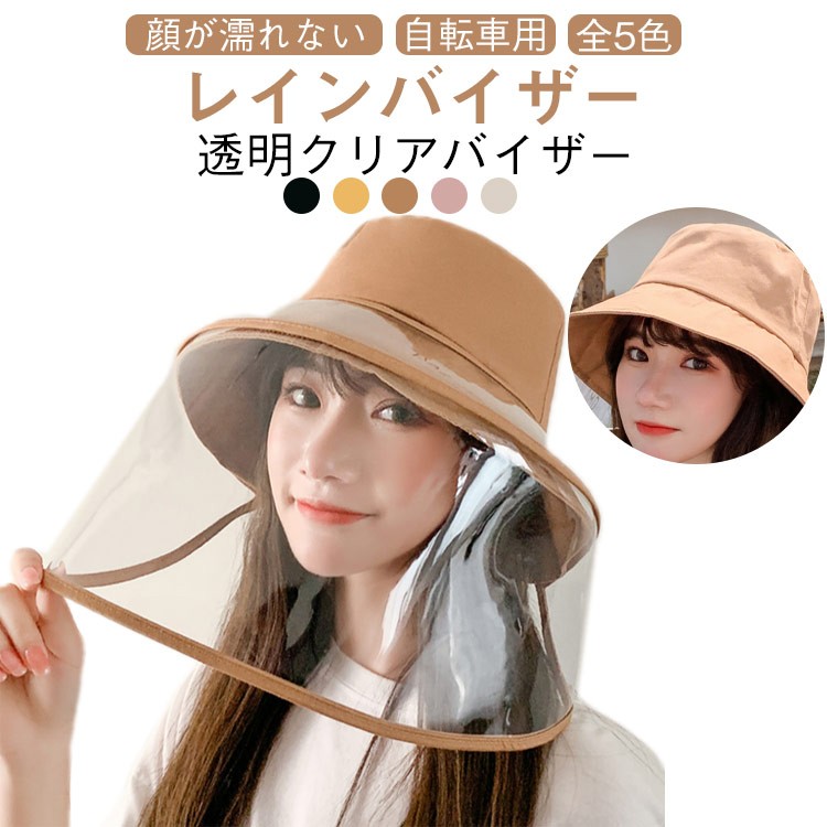 自転車 レインバイザー 取り外し可 飛沫対策 つば広 雨対策 顔が濡れない 化粧崩れ クリア 日除け帽子 レインハット クリアバイザー 透明 帽子 レディース メンズ レイン 寒さ対策