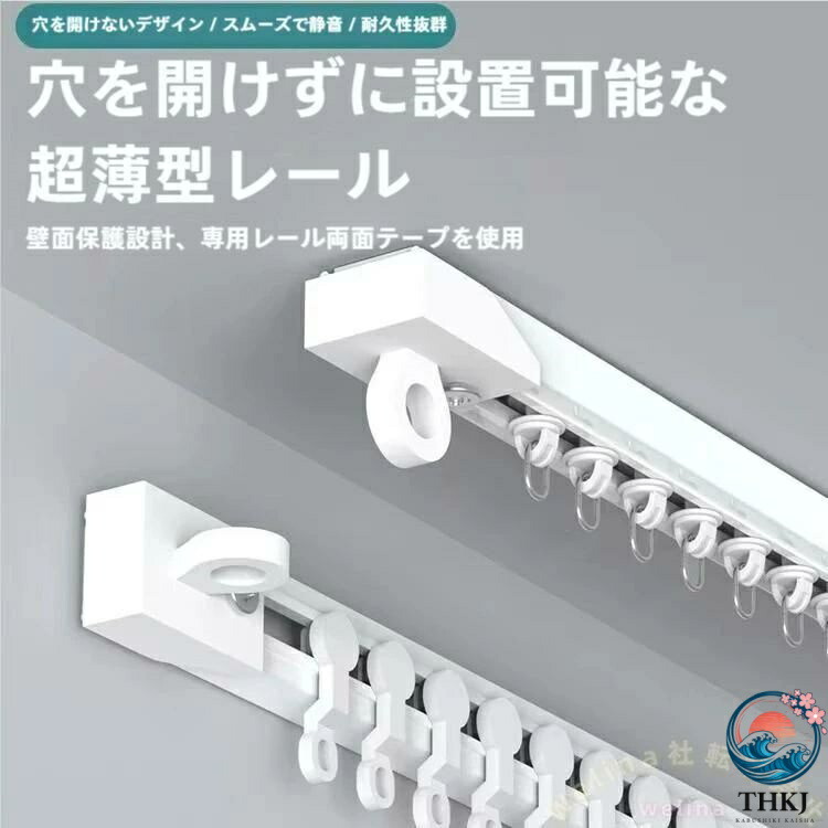突っ張りカーテンレール100-300cmカット自在シングルダブルWelina両面テープつっぱり0.5m6個簡単設置間仕切り柔軟
