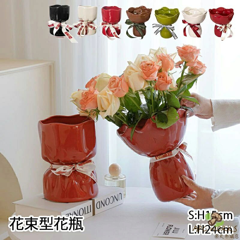 INS風 花束型 花瓶 フラワーベース 陶器 おしゃれ セラミック モダン はなたば型 かびん インテリア 大きい 磁器 H24cm 小さい H15cm 一輪挿し 生花 造花 ドライフラワー かわいい