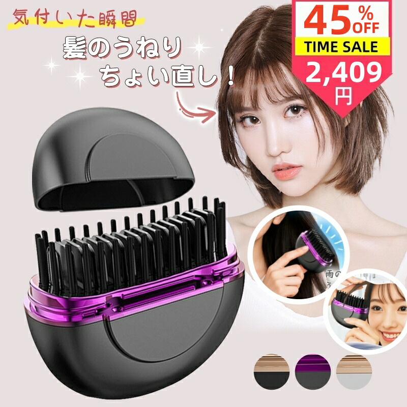 ストレートブラシ 40秒速熱 ヘアアイロン ヒートブラシ コードレス 携帯用 超軽量 ミニ ポータブル 前髪 おくれ毛根元 スタイリング 3段階調整 通勤通学出張 クリ USB充電
