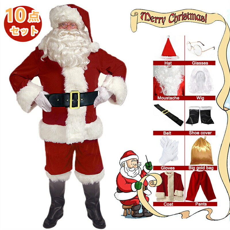 高品質 サンタクロース コスチューム メンズ 大人用 サンタ コスプレ クリスマス 衣装 サンタ帽子 サンタウィッグ 着ぐるみ パーティー 演出服 大きいサイズ 仮装グッズ
