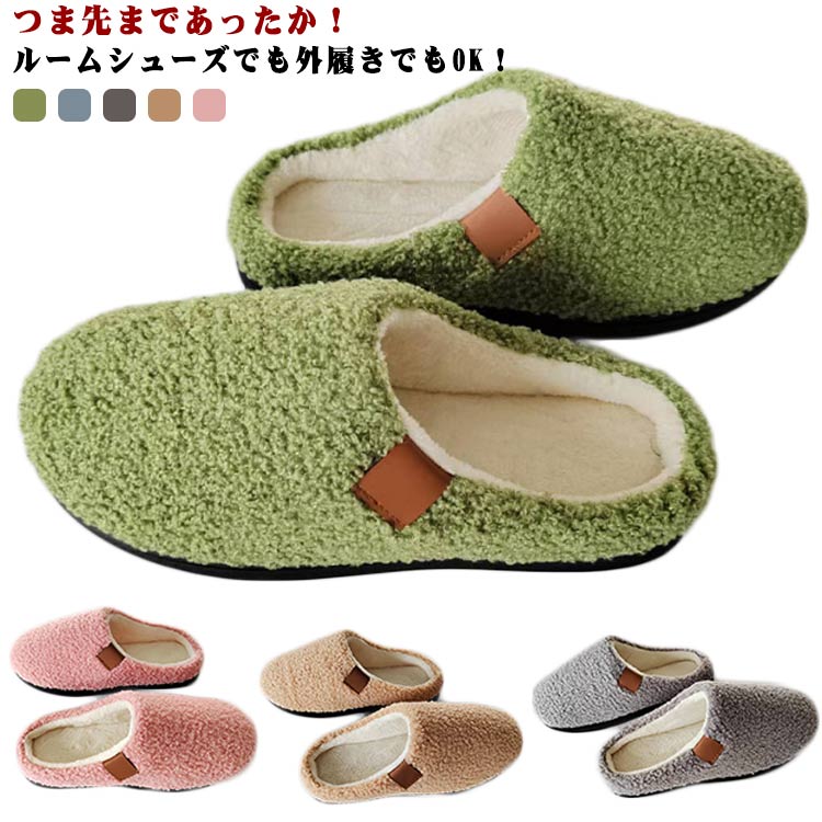 ルームシューズ もこもこ スリッパ レディース メンズ ベランダサンダル 防寒シューズ 冬用 あったか 裏起毛 アウトソール スリッポン 室内 来客用 カジュアル