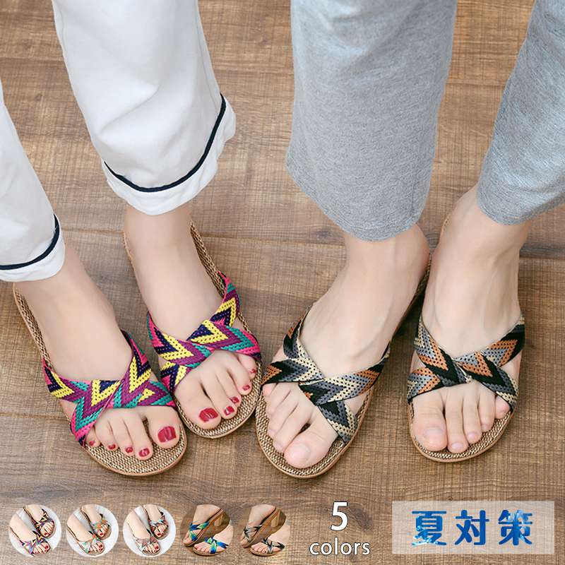 夏スリッパ ルームシューズ スリッパ 室内 ホームスリッパ ギフト ペア 夏 麻 サンダル 涼しい 春 可愛い リネン ジュート 来客用 レディーススリッパ 洗える 夏用 ボーダー メンズスリッパ