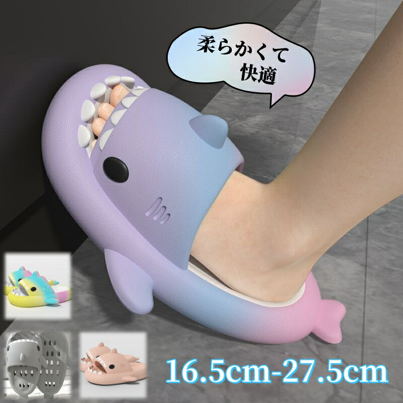 スリッパ サメ 16.5-27.5cm 親子 夏 45° 穴あき 室内履き 洗える 滑らない 厚底4cm 特大 メンズ 静音 部屋用 サメサンダル ルームスリッパ イナ ルームシューズ