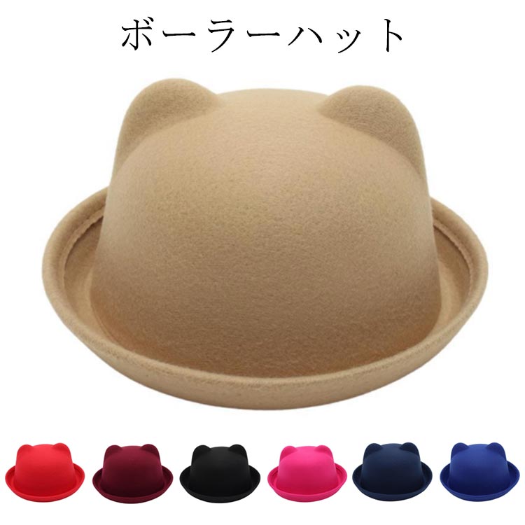 つば付きハット 猫耳 キッズハット 帽子 ネコ耳 無地 子供用 シンプル ボーラーハット 親子コーデ FELT フェルトハット メンズ レディース レディースハット 女の子 フェ ぼうし