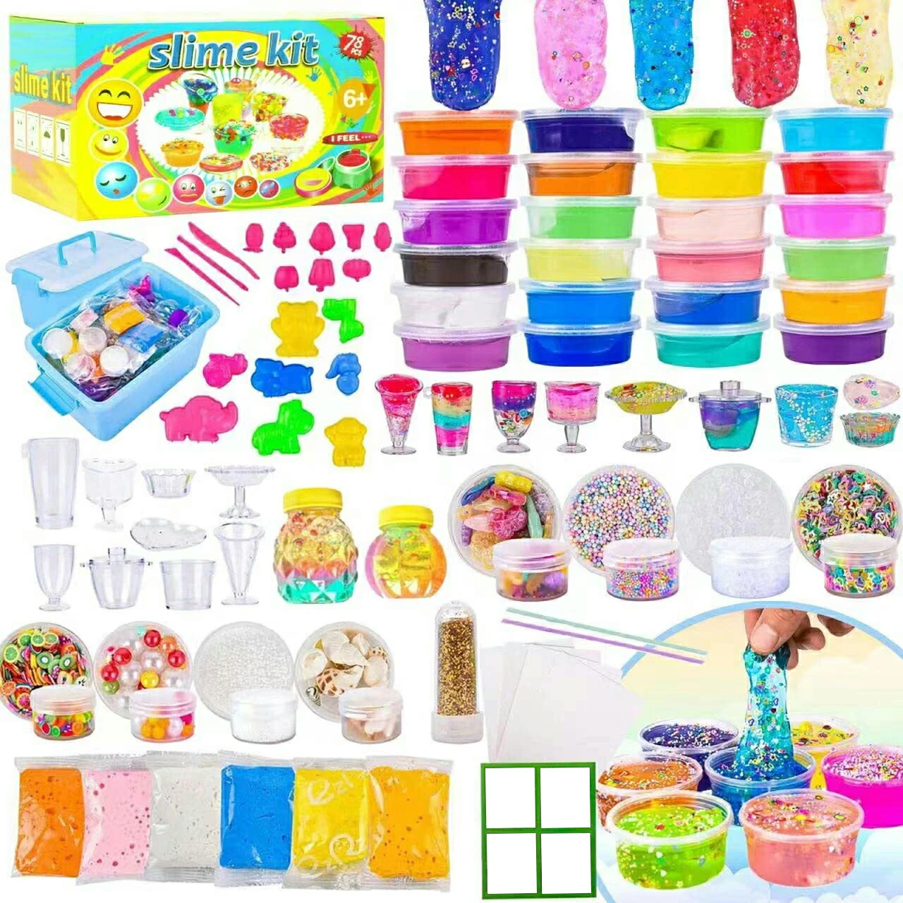 スライム キット 水晶粘土 DIY ねんど セット おもちゃ 手作りツール ビーズ 果物切片 コンク 真珠 動物 粘土遊び 含有30個入りふわふわクリスタル粘土 78PCS カラフルフォーム紙吹雪