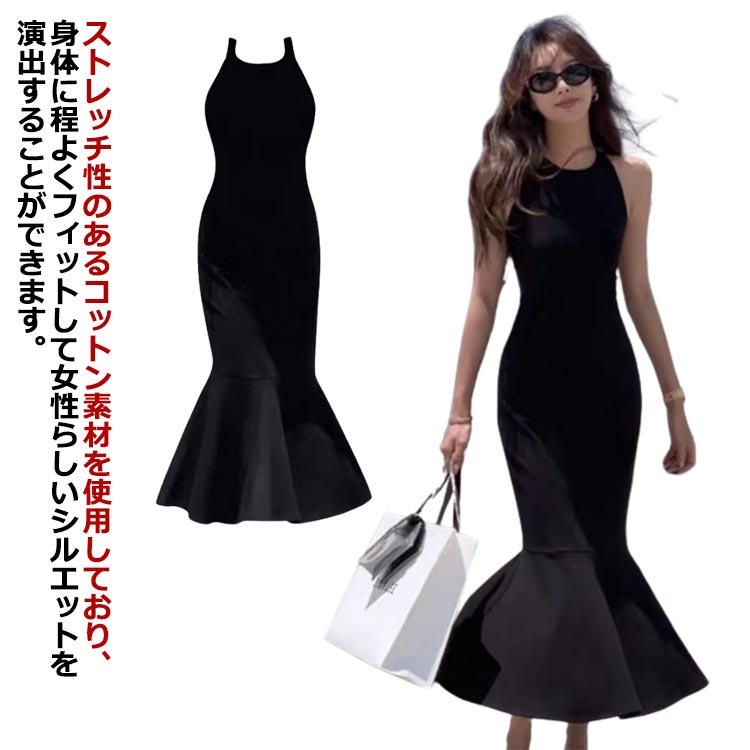 2023秋新作 マーメイド ワンピース ホルターネック ノースリーブ インナーワンピース ロング丈 タイト 美シルエット 女性 大人 可愛い タンクトップ キャミ セクシー ワ マキシ丈