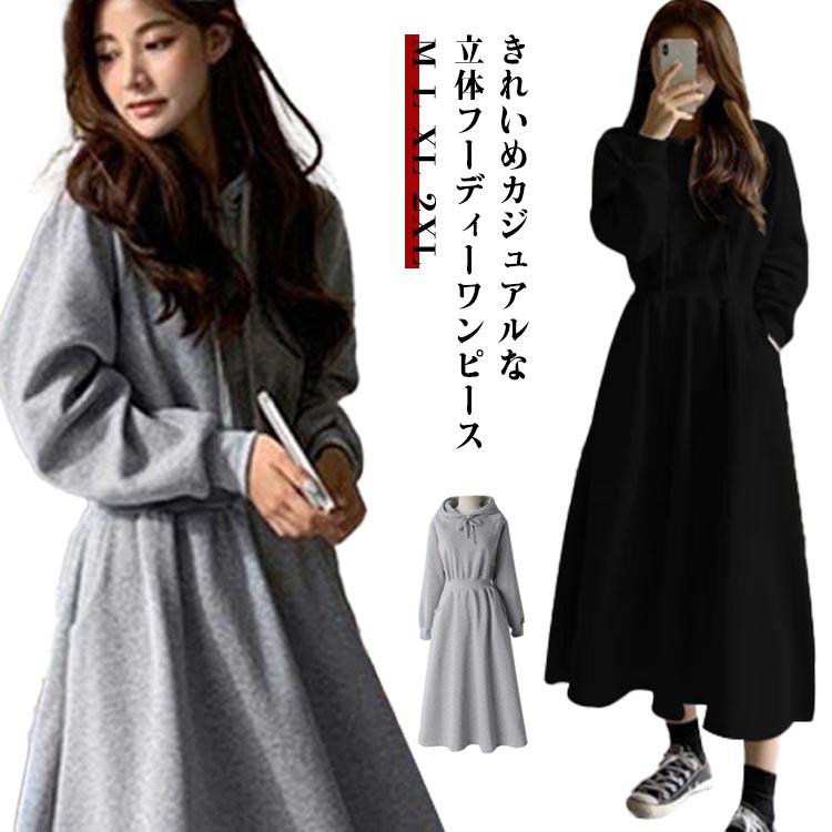 パーカーワンピース 裏起毛 レディース 秋冬 パーカー ワンピース 大きサイズ マキシ丈 ロングワンピース ロング丈 秋冬 フード付き