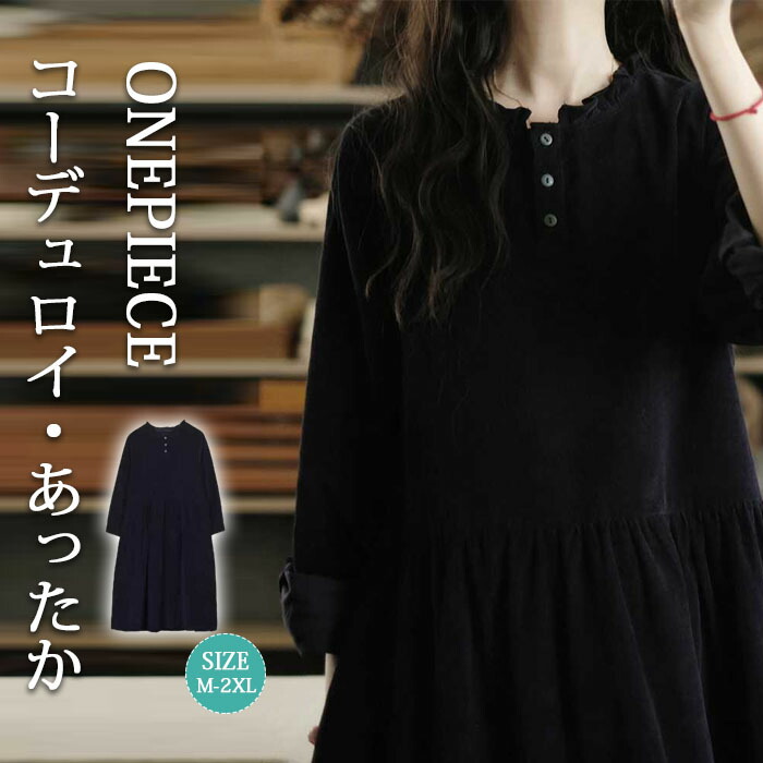コーデュロイ ワンピース マキシワンピース ロング丈 あったか 無地 体型カバー ロング 長袖 マキシワンピ コーデュロイワンピ ぽわん袖 暖かい ゆったり 大人可愛い 着痩せ 30代 40代 大人
