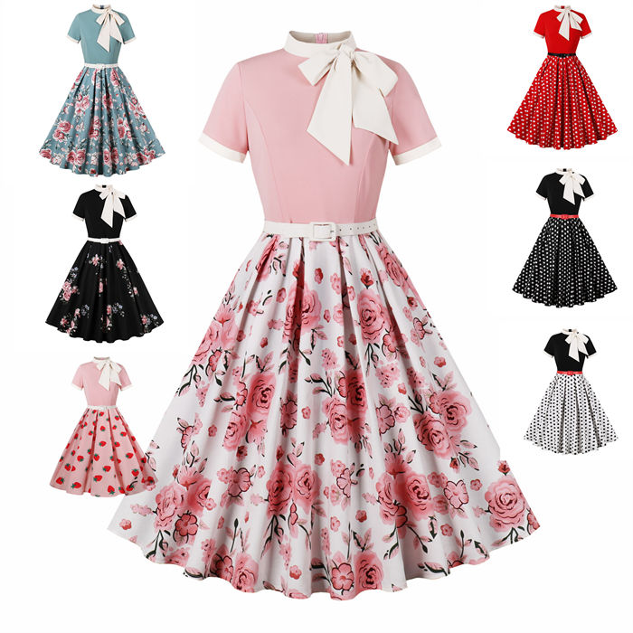 スイングワンピ レトロワンピース レディース 大きい裾 春夏 ワ