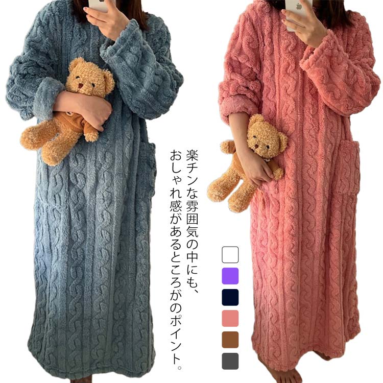 ルームウェアルームウエアワンピースボアフリース裏起毛ワンピース 長袖厚手パジャマネグリジェモコモコルームウェア部屋着 レディース パジャマ マキシワンピース おうち時間 人気 おしゃれ 秋 冬 暖かい