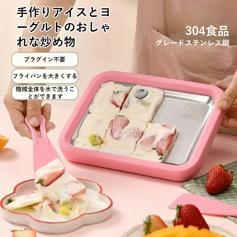 アイスクリームメーカー ヘラ2本付 電気不要 冷凍 手動かき氷器 スリップ底製造機 お手入れ簡単 ポータブル 全3色シャーベットメーカー ステンレス製 パーティー用 ヨーグルトフライ機 ロール 多用途