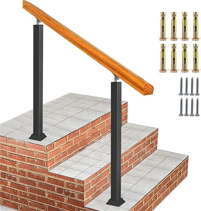 手すり 屋外 玄関 階段 無垢材 手摺り マット ブラック アイアン 階段手すり 角度調整可能 高齢者用 サポート 水平置き可能 屋外手すりに適しています 60 80 100 120 140 高さ85