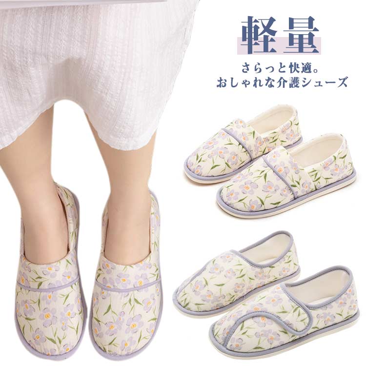ルームシューズ 履きやすい 産前産後 介護シューズ レディース 綿 滑り止め 入院 介護 病院 マタニティスリッパ 出産準備 リハビリ 軽量 軽い 秋 室内履き 花柄 来 春夏