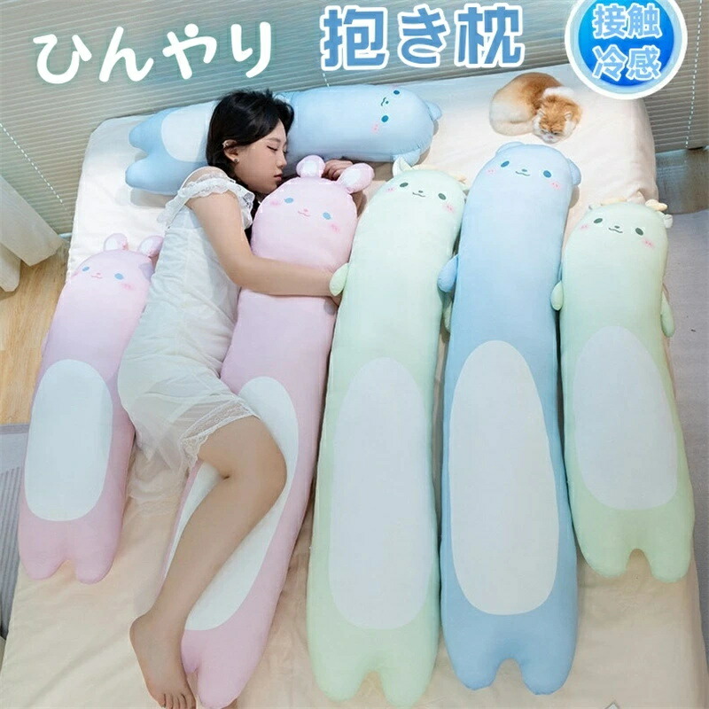 冷感 抱き枕 長い 長い枕 だきまくら ロング枕 背もたれ 接触冷感 クッション 暑さ対策 猛暑対策 涼しげ 足枕 カバー洗える 長いクッション 多機能 夏用 かわいい ぬいぐるみ 春 夏 動物