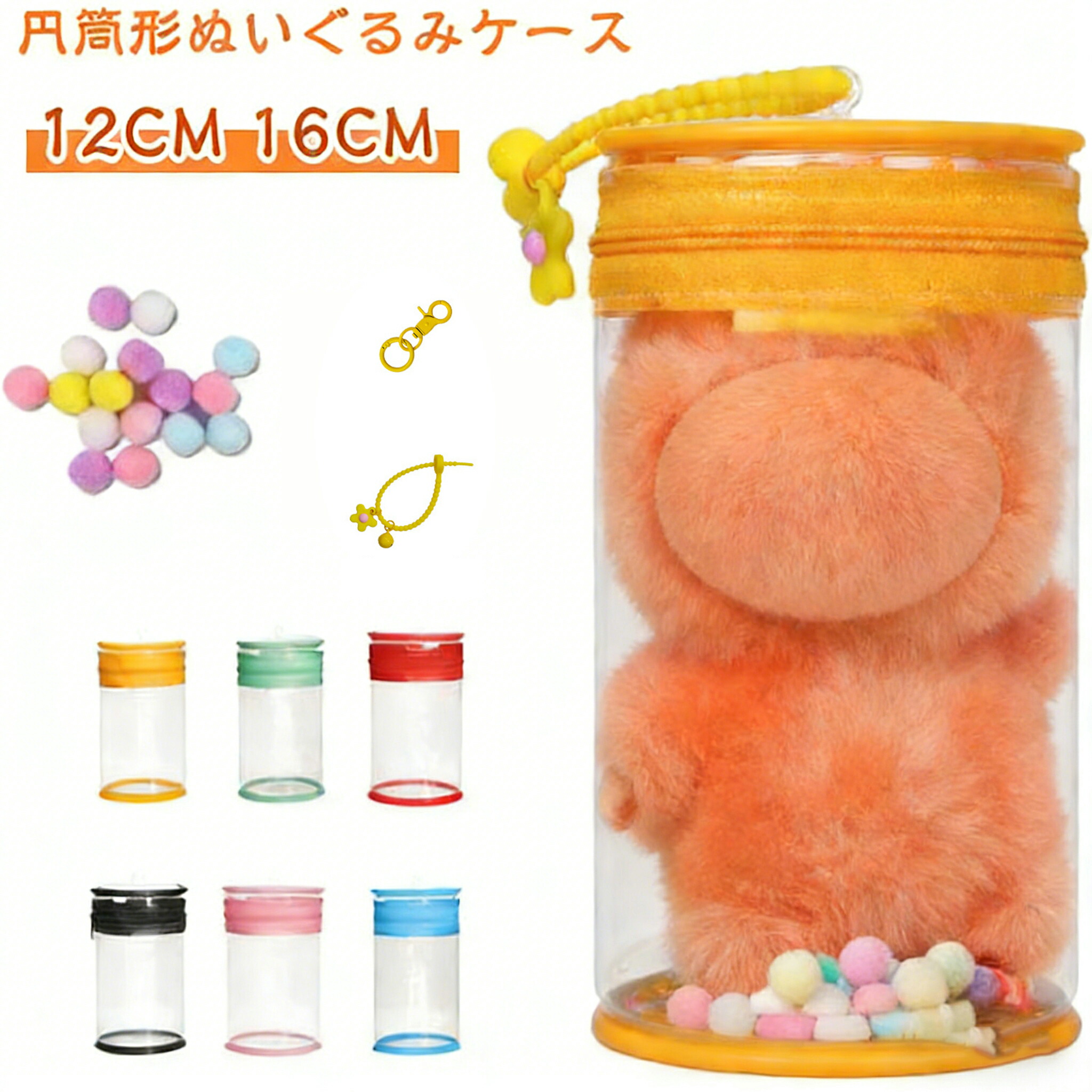 ぬいぐるみケース 円筒形 蓋付き 12 16 ぬいポーチ ぬいぐるみポーチ クリア ケース 持ち運び コンパクト 軽量 透明