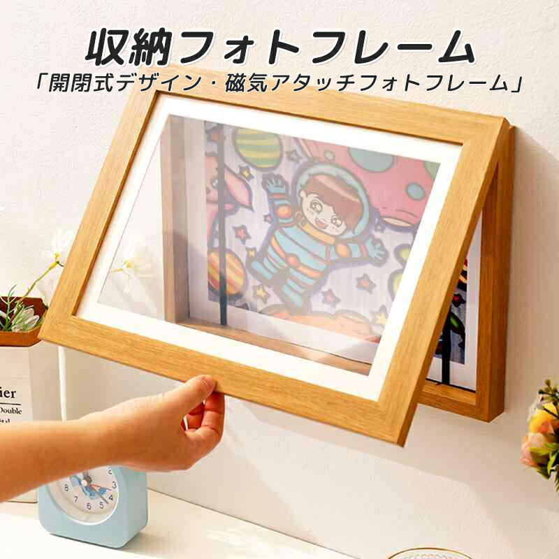 4 マグネット付き フレーム アートフレーム 子供の絵 額縁 ポスターフレーム 木製 マグネット開閉 壁掛け フォトフレーム 絵画 写真 保管 収納 ディスプレイ 横縦兼用