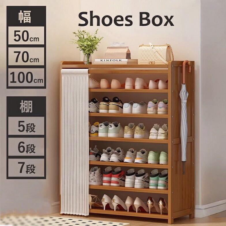 シューズラック 竹製 幅50 70 100cm 棚5 6 7段 コンパクト大容量 靴棚 靴収納ラック 多層 靴置き カーテン付き 収納キャビネット 省スペース スリム 防塵 通気 防臭 おしゃれ