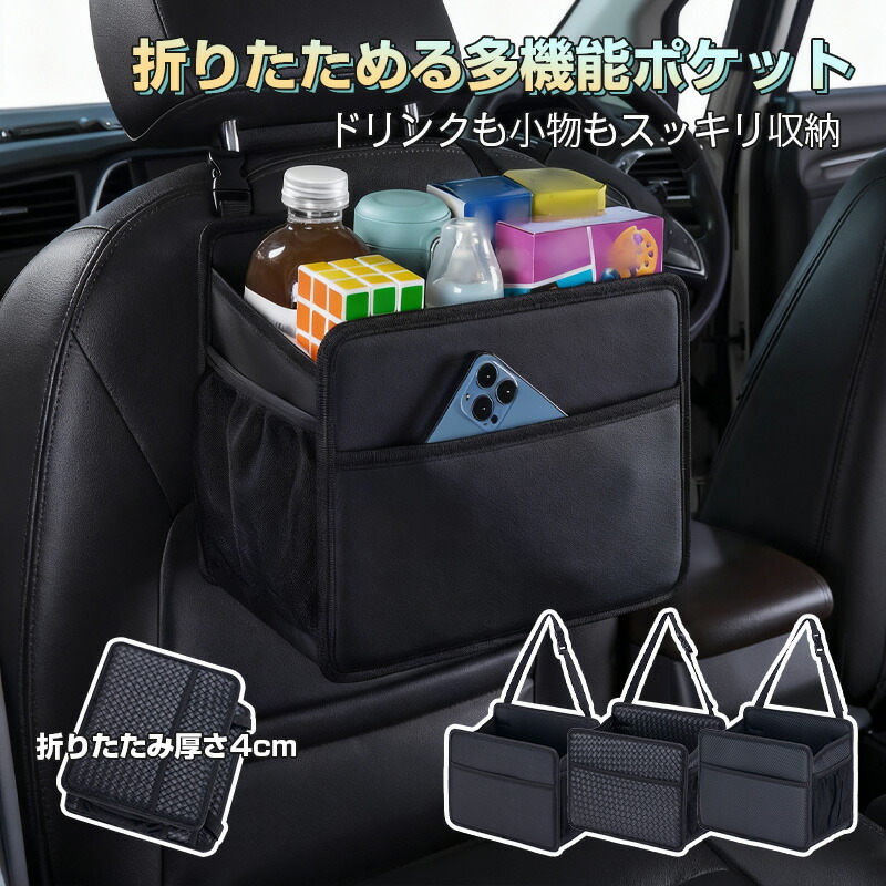 車内収納 バッグ 車 シートバックポケット 車内 ヘッドレスト 収納 ポケット ドリンクホルダー ゴミ箱 後部座席 助手席 折りたたみ式 子供 ボトル コンパク おしゃれ