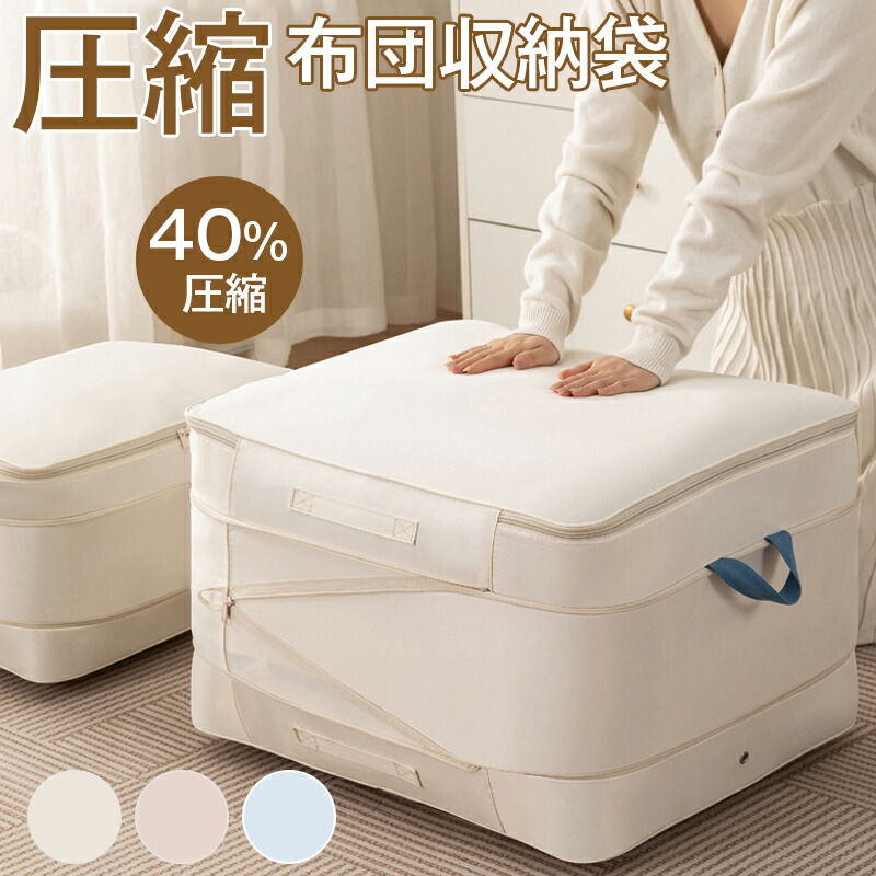 圧縮収納袋 2サイズ 圧縮 スペース 40% 節約 布団収納 圧縮袋 収納袋 衣類収納 持ち手付き バイカラー シンプル かわいい おしゃれ 引っ越し 衣替え クローゼット 押入れ収納 シーズンオフ