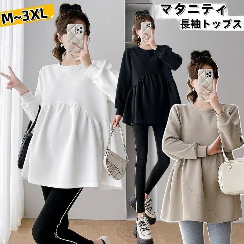 快適な着心地で外出服に最適 妊婦さん向けの体型カバーと足長効果がある長袖トップス 春秋冬の季節に対応し産前産後問わず使用可能