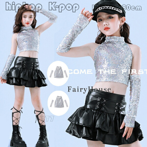 キッズダンス衣装 女の子 キラキラ スパンコール ベスト hiphop ダンスウェア ヒップホップ 舞台 団体服 演出服 110cm-180cm 子供応援団 チアガール 原宿系 K-P トリートダンス