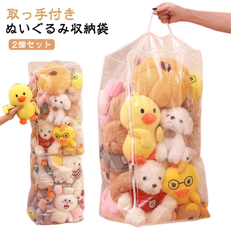 ぬいぐるみ収納 クリア 整理整頓 中身が見える袋 持ち手付き 防塵 保護 整理 ぬいぐるみ 収納 おもちゃ収納 収納ボックス ディスプレイ 折りたたみ 見せる収納 小物収納 送料無料