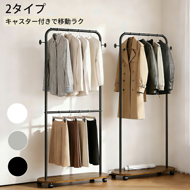 ハンガーラック おしゃれ シンプルな棚付き 掛けて収納 整理 動かしやすいキャスター付き ハンガー