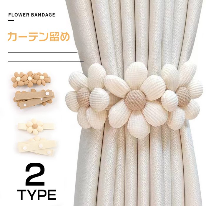 カーテンタッセル 2個セット お花 アクセサリー カーテン留め カーテンホルダー 留め飾り 取り付け簡単 オシャレ プレゼント ギフト 雰囲気 かわいい