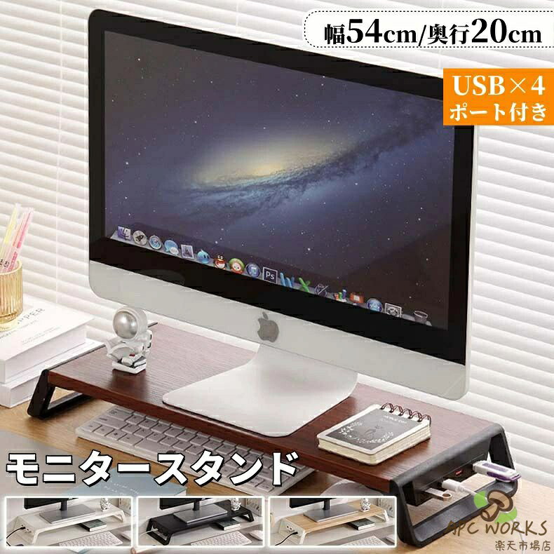 モニター台 モニタースタンド パソコン台 机上ラック ディスプレイ台 横幅54cm 高さ7.5cm USBポート付き 卓上 pc台 木製 木目調 キーボード収納 机上 机上台 pcモニ デスクトップ用