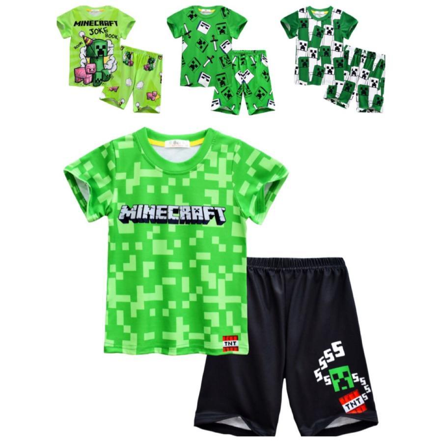 新作 パジャマ 上下セット マイクラ クリーパー MINECRAFT マインクラフト Tシャツ 総柄 半袖 パンツ 子供服 ルームウエア 男 ジュニア