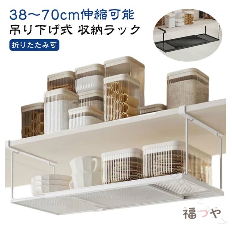吊り下げ収納 戸棚下収納ラック 伸縮可 スリム設計 折りたたみ可 吊り下げ棚 ワイドタイプ 吊り戸棚下ラック 伸縮式 キッチン収納 棚下収納ラック 便利収納 調味料収納 折り畳み収納で使い 省スペース