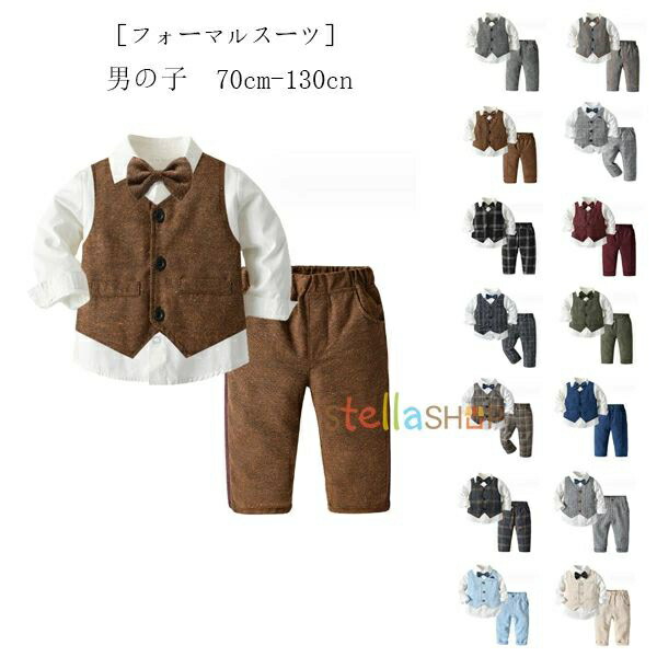 フォーマルスーツ 男の子 長袖シャツ ベスト 長ズボン ネクタイス 紳士 セットアップ 全14色 子供服 赤ちゃん 誕生日 パーティー スーツ 上下セット キッズ 卒園式 発表会 七五 入園式