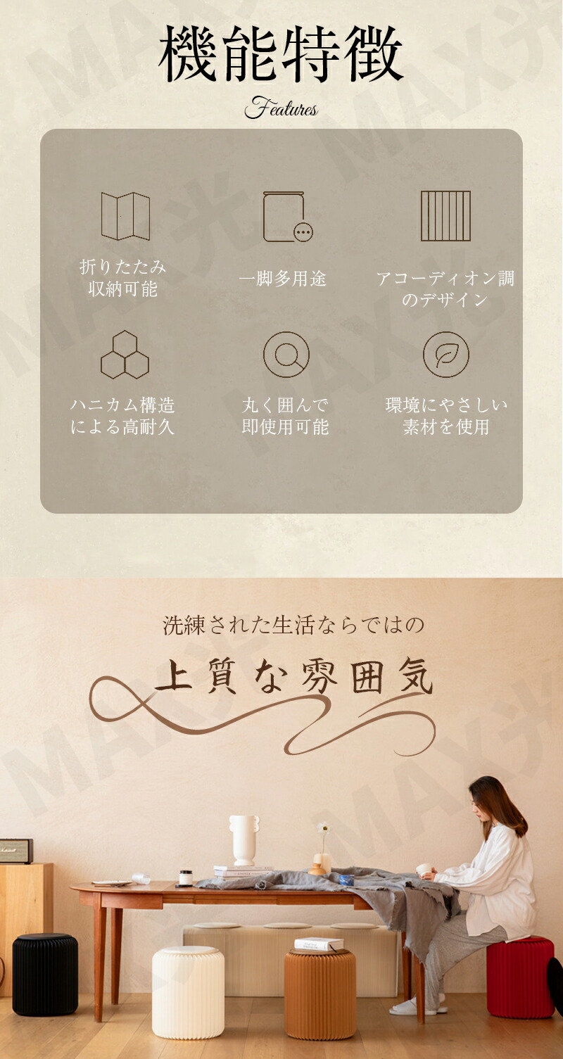 折りたたみチェア 折りたたみ椅子 紙製アコーディオン式 一台多役 クッション付き チェア 折りたたみ イス 折り畳み いす アート 一人暮らし レザークッション ハニカム構造 アコーディオン 簡易椅子