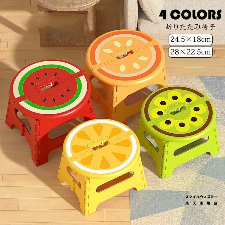小さい24.5×18cm 折りたたみ椅子 おしゃれ 踏み台 クラフタースツール チェア ステップ台 脚立 コンパクト フルーツ柄 かわいい インテリア 雑貨 子ども ステップ トイレ キ 子供
