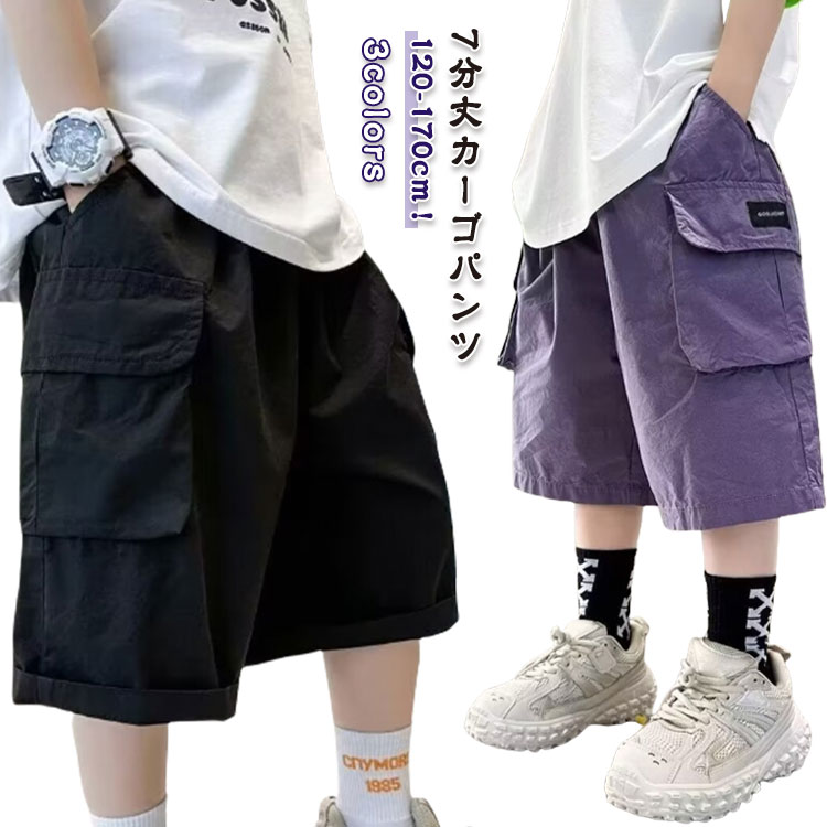 7分丈パンツ 夏物 キッズ パンツ カーゴパンツ 男の子 お洒落 子供用 無地 通学 通園 ダンス 送料無料