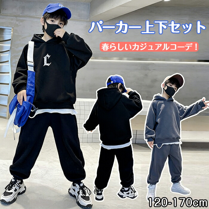 セットアップ 上下セット キッズ 子供服 男の子 トレーナー パーカー 長袖 フード付き パンツ おしゃれ かっこいい スポーツ スウェット ゆったり ジャージ カジュアル ジュニア 旅行 部 小学生