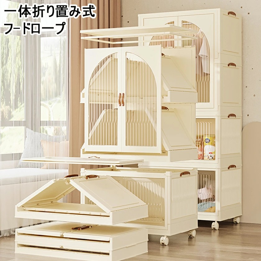 クローゼット ワードローブ 折りたたみ 可動式ク 洋服収納 キャスター付き インストール-不要 プラスチック 収納 キャビネット ホワイト ロッカー