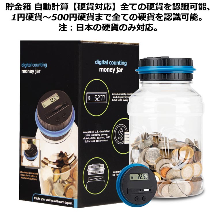 貯金箱 子供 500円玉 100円 50円 5円 自動計算 透明 液晶表示残高 デジタルカウンターバンク 札とコインを貯える 大容量 貯蓄 お金 金額調整 計算 貯まる 硬貨 誕 お小遣い