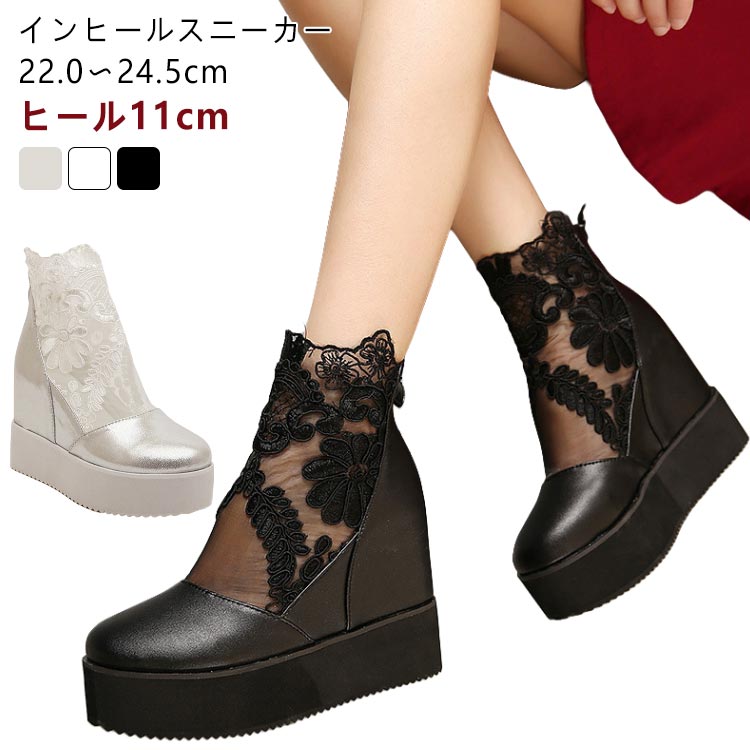 11cm インヒールスニーカー 刺繍 厚底スニーカー ブライダルシューズ 和装 プラットフォームスニーカー レース レディース 厚底 シューズ 疲れない ヒール インヒール 靴