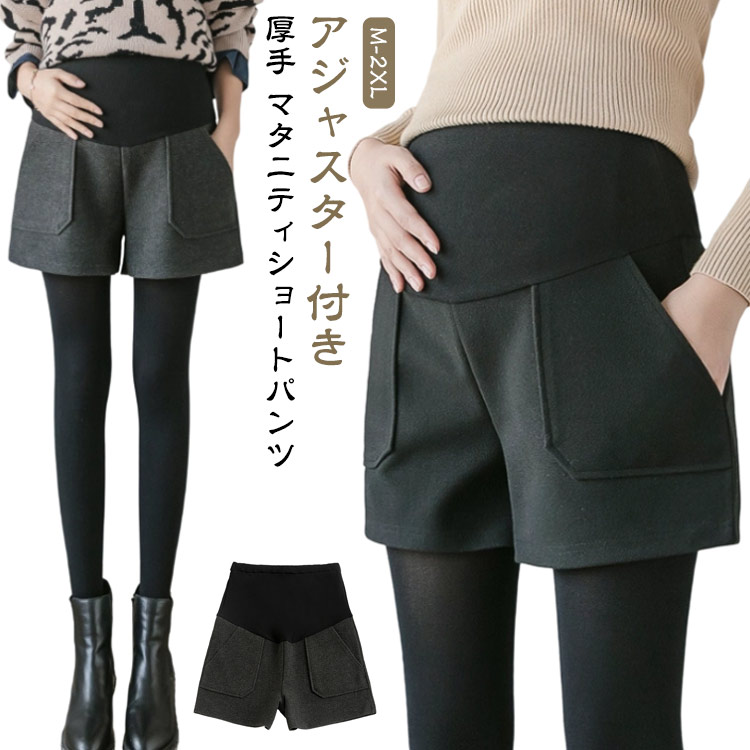 マタニティ ショートパンツ 秋 冬 秋冬 冬用 厚手 レディース 妊婦 短パン ワイドショートパンツ ショパン ワイドパンツ ショート丈 アジャスター付き ボトムス リラックス ショ マタニティウェア
