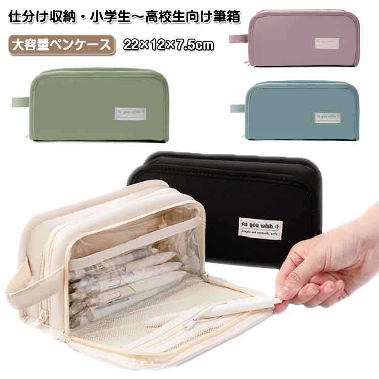 筆箱 ペンケース 女の子 男の子 大容量 多機能 シンプル おしゃれ 文房具 仕切り ポケット 筆入れ 化粧品入れ ふでばこ ツールペンケース ポーチ 小学生 中学生 入学入園 お祝い プレゼ 新学期
