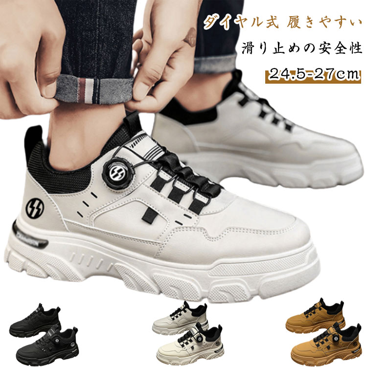 ダイヤル式 ウォーキングシューズ スニーカー メンズ ゴルフシューズ 厚底 靴 簡単脱着 スポーツシューズ 通気 衝撃吸収 滑り止め シューズ 運動靴 ダイヤル式スニーカー 大きいサイズ トレー 軽量