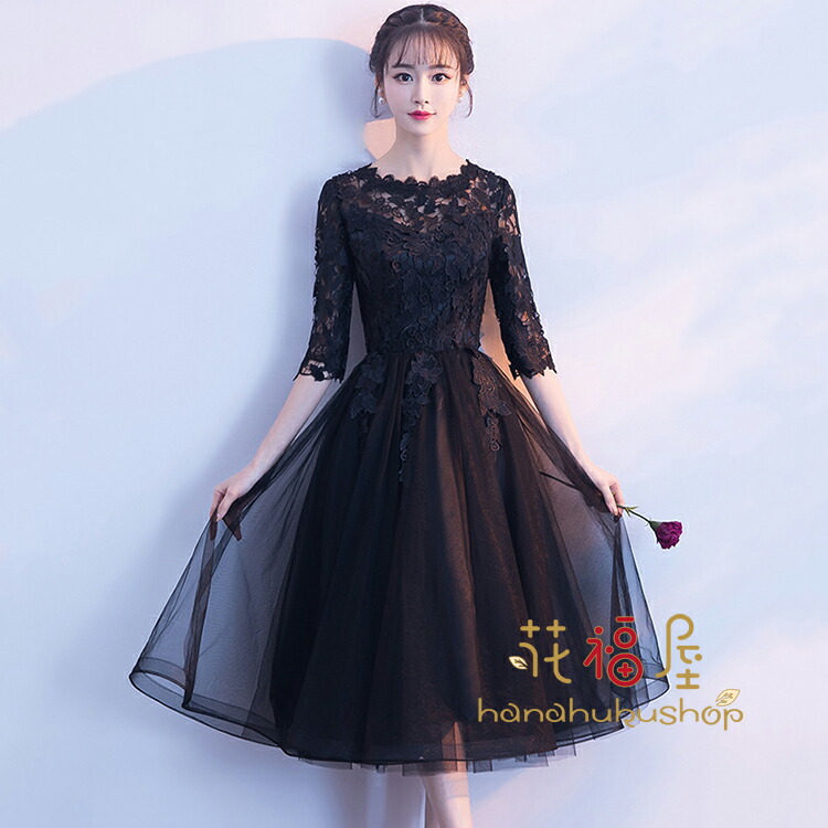 パーティードレス 結婚式 袖あり ウエディング ミモレ丈 ワンピース レース 大きいサイズ 大人 上品 お呼ばれ 食事会 二次会 披露宴 卒業式 成人式 黒
