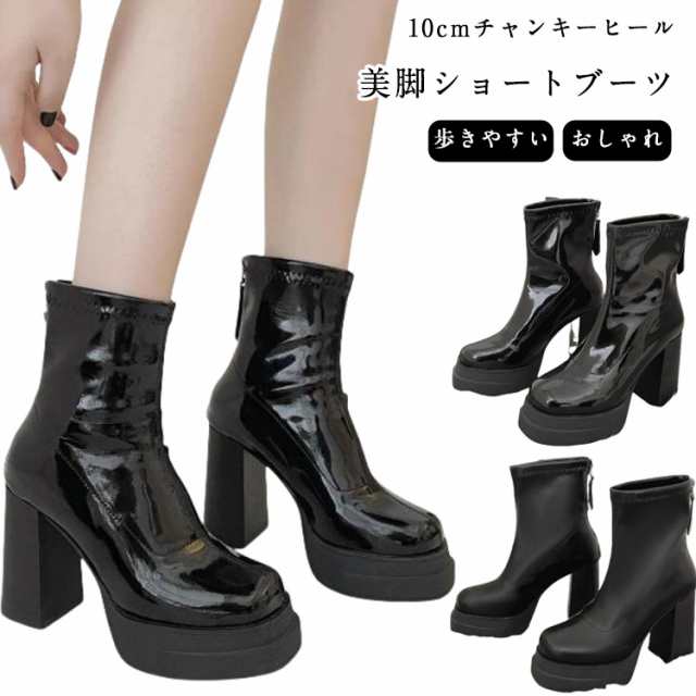 チャンキーヒール 痛くない 袴 レディース ショートブーツ 10cmヒール 太ヒール バックジップ きれいめ プラットフォーム 厚底ブーツ 脚長 歩きやすい 厚底 おしゃれ ストーム