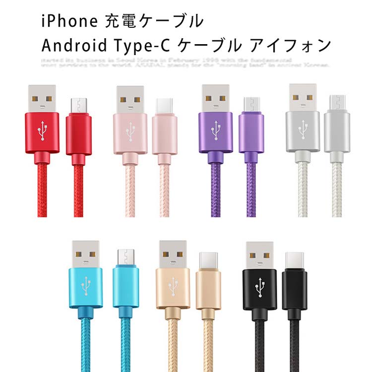iPhone 充電ケーブル Android Type-C ケーブル アイフォン タイプc 長さ 約 1m 2m 3m データ転送 USB 4A急速充電 超高耐久 ナイロン 断線防止