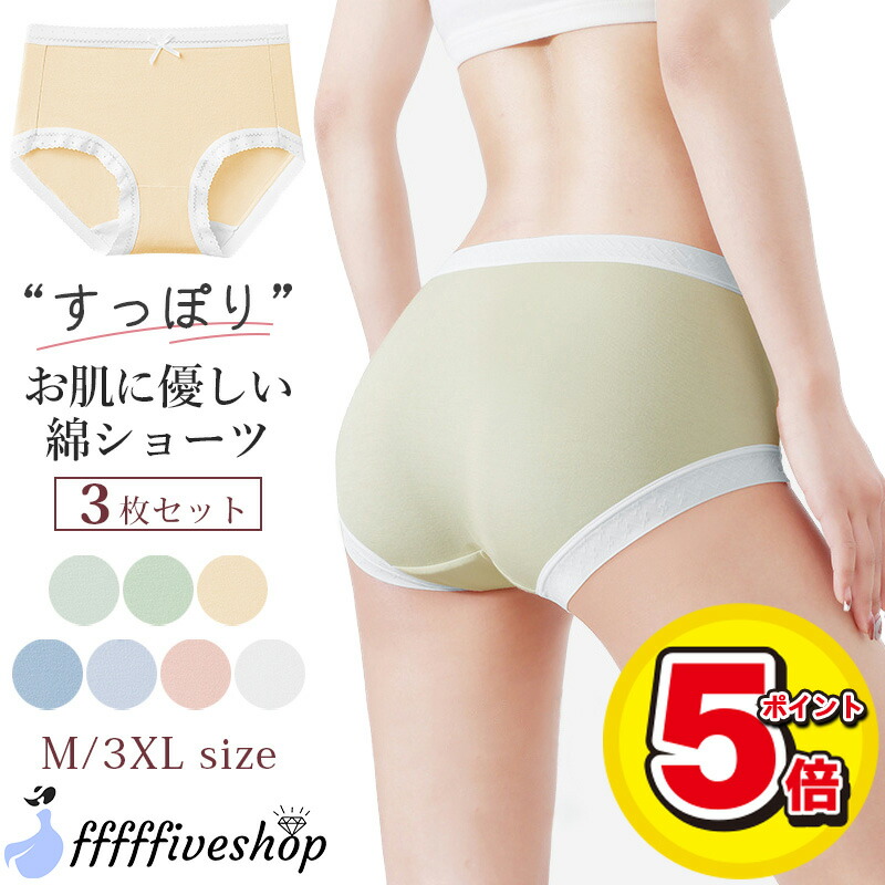 3枚セット ショーツ 綿100% レディース レース 綿 コットン パンツ 下着 かわいい 無地 フィット感 大きいサイズ 包み込む 食い込まないショーツ スダンダードショーツ M LL 3L 4 L
