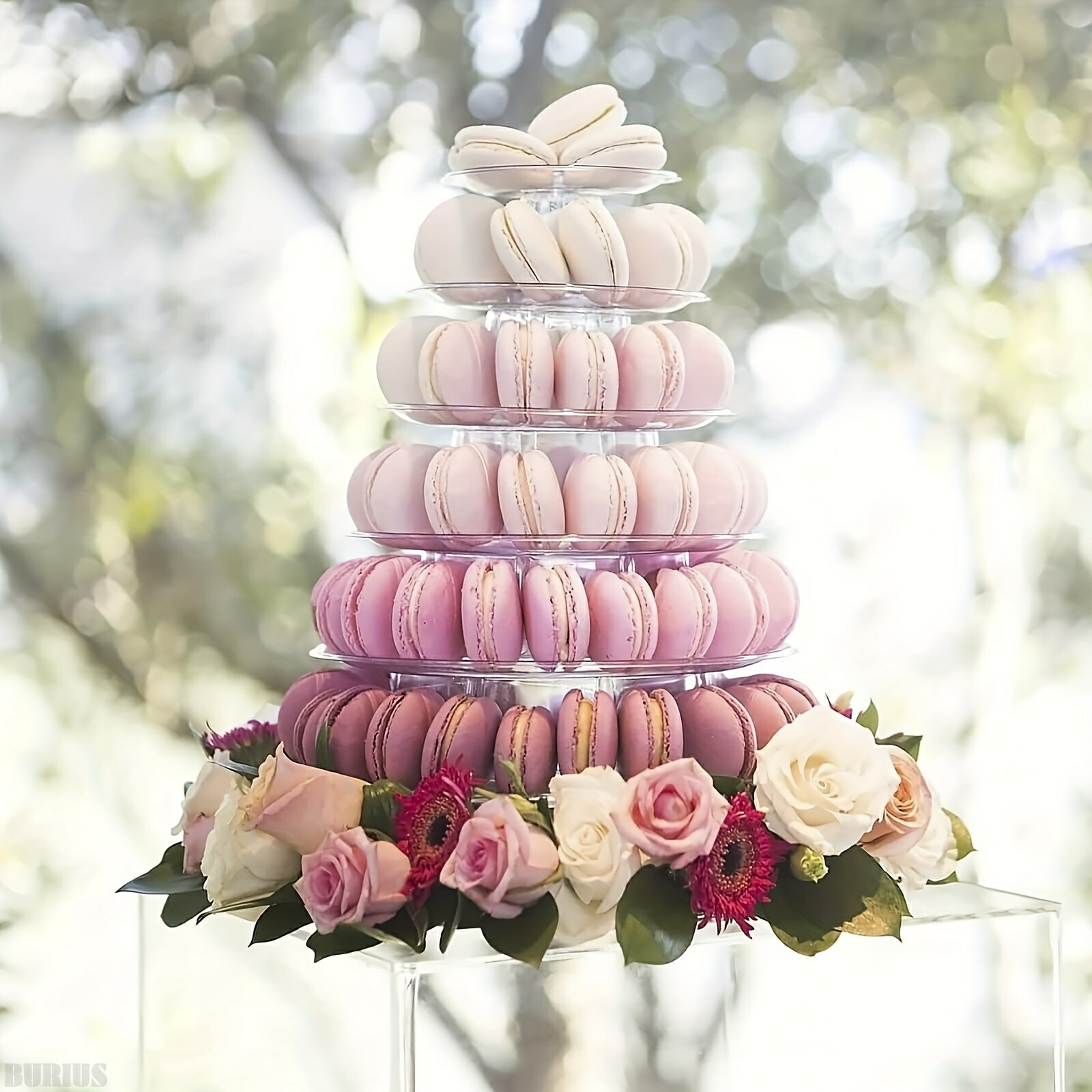 6段プラスチック製マカロンスタンド - デザート用マカロンディスプレイタワー 結婚式、誕生日、パーティー用のクリアケーキホルダートレイ