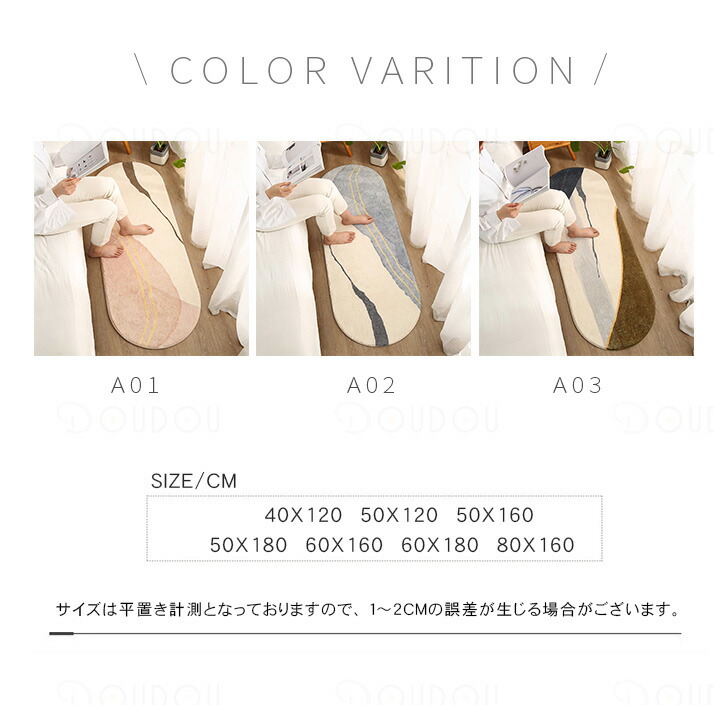ラグマット 楕円形 丸 洗えるシャギー 50*120cm 50*160cm 50*180cm 60*160cm 60*180cm 80*160cm A01 A02 A03