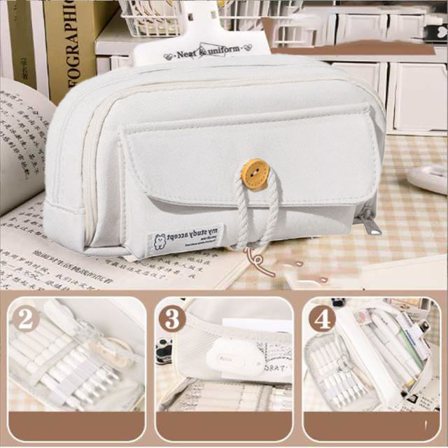 中学生 多機能 ペンケース 高校生 可 日用品雑貨 文房具 手芸 人気 グリーン オフホワイト ブルー グレー